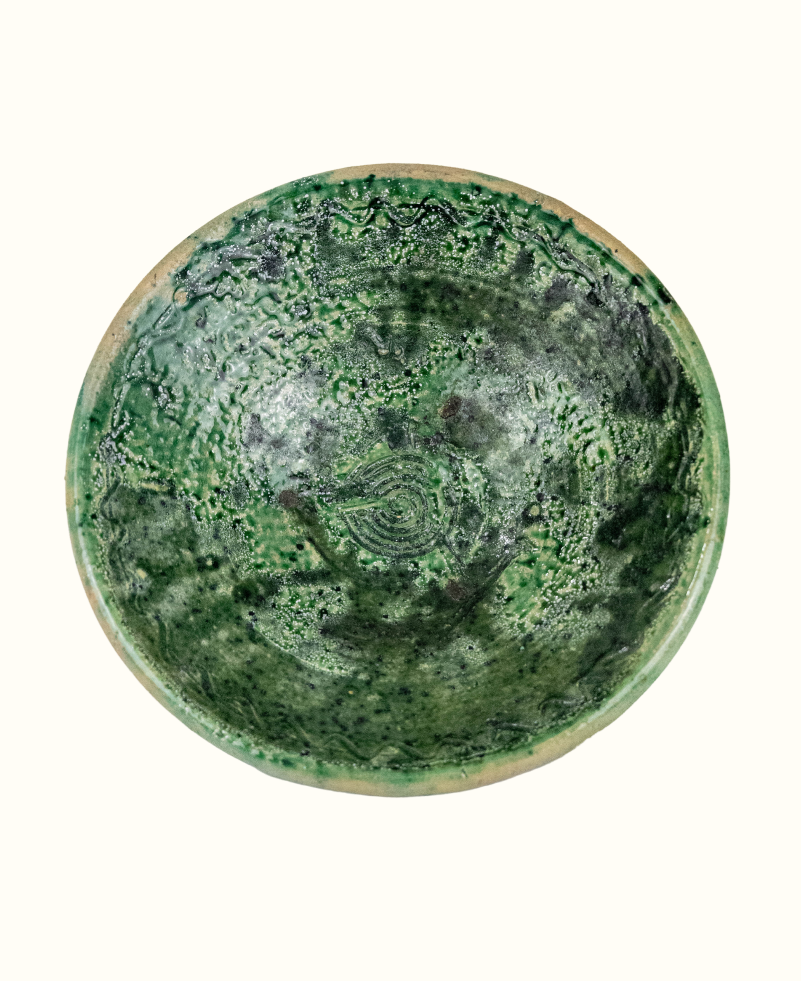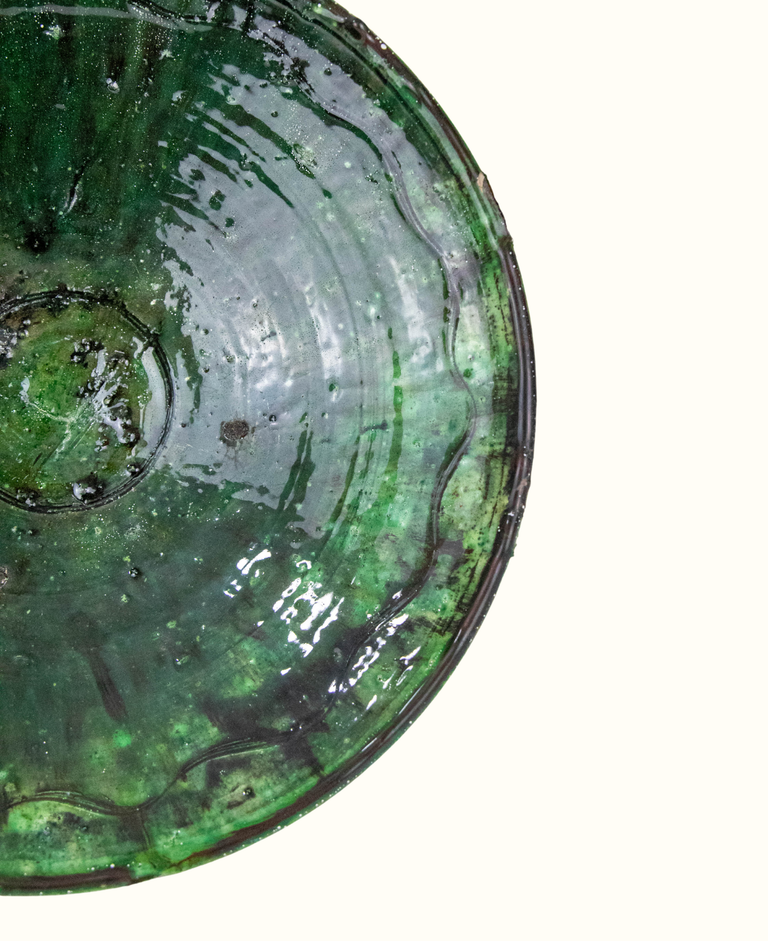 Moroccan Vintage Tamegroute Green Glazed Bowl
